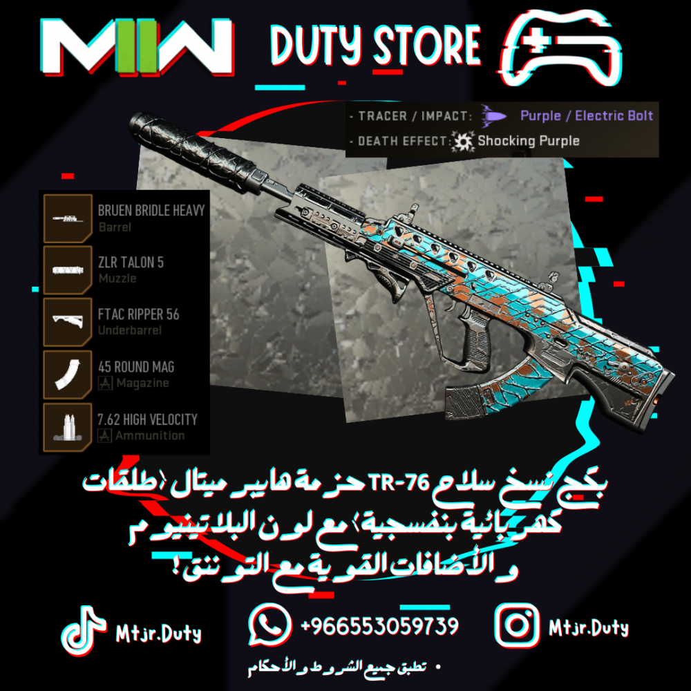 بكج نسخ سلاح TR-76 حزمة هايبر ميتال (طلقات كهربائية بنفسجية) مع لون البلاتينيوم والأضافات القوية مع التوننق !