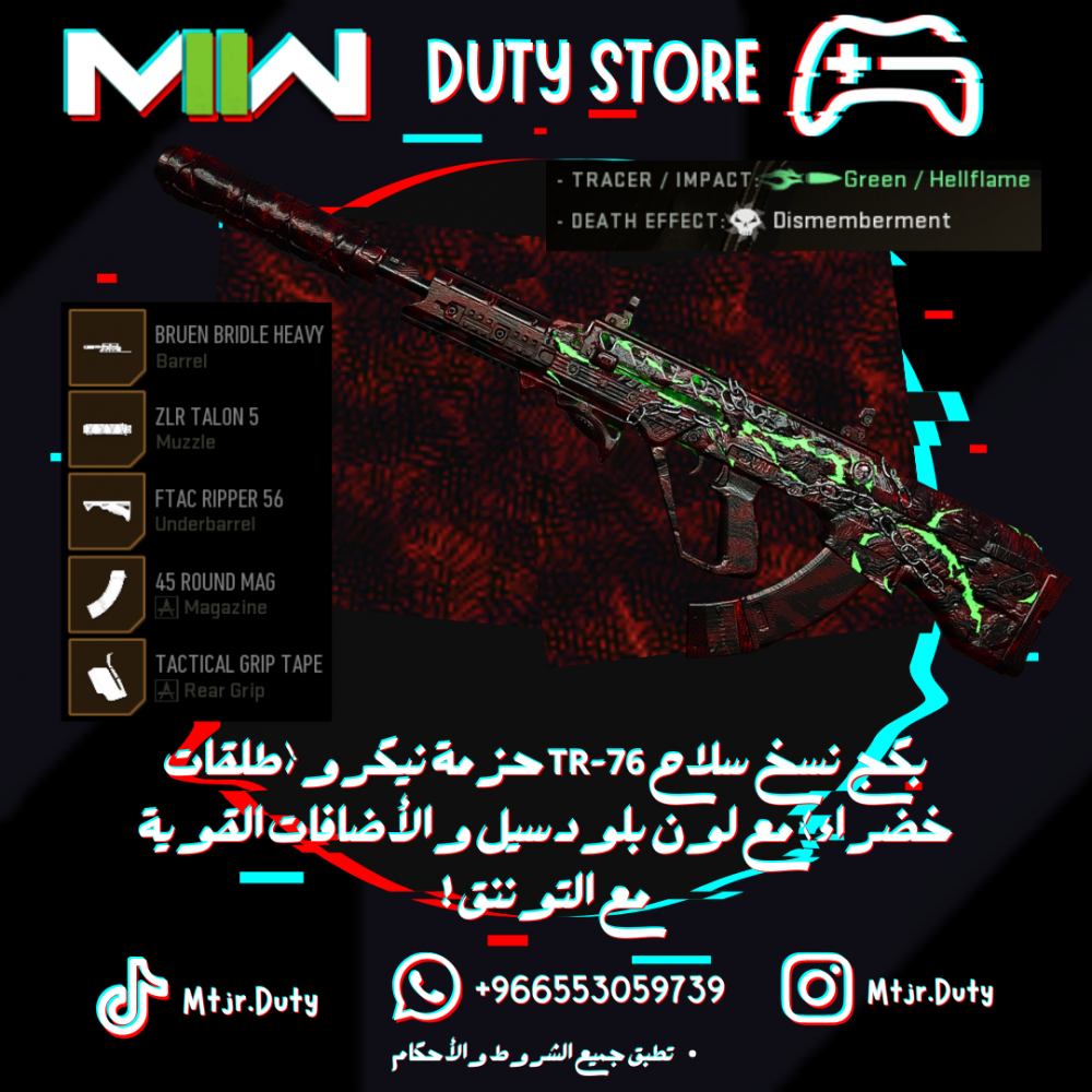 بكج نسخ سلاح TR-76 حزمة نيكرو (طلقات خضراء) مع لون بلودسيل والأضافات القوية مع التوننق !