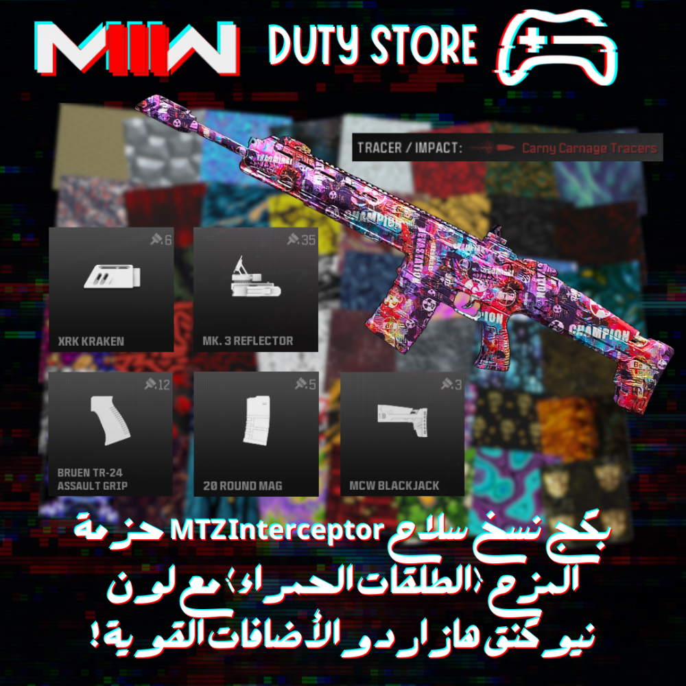 بكج نسخ سلاح MTZ Interceptor حزمة المزح (الطلقات الحمراء) مع لون نيوكنق هازارد والأضافات القوية ! (جميع المنصات)