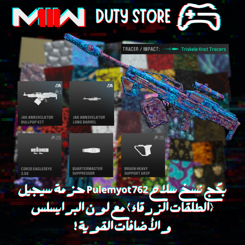 بكج نسخ سلاح Pulemyot 762 حزمة سيجيل (الطلقات الزرقاء) مع لون البرايسلس والأضافات القوية ! (جميع المنصات)