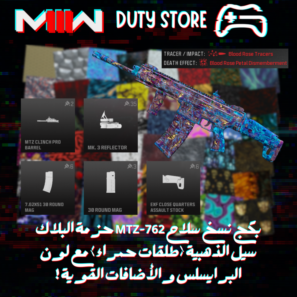 بكج نسخ سلاح MTZ-762 حزمة البلاك سيل الذهبية (طلقات حمراء) مع لون البرايسلس والأضافات القوية ! (جميع المنصات)