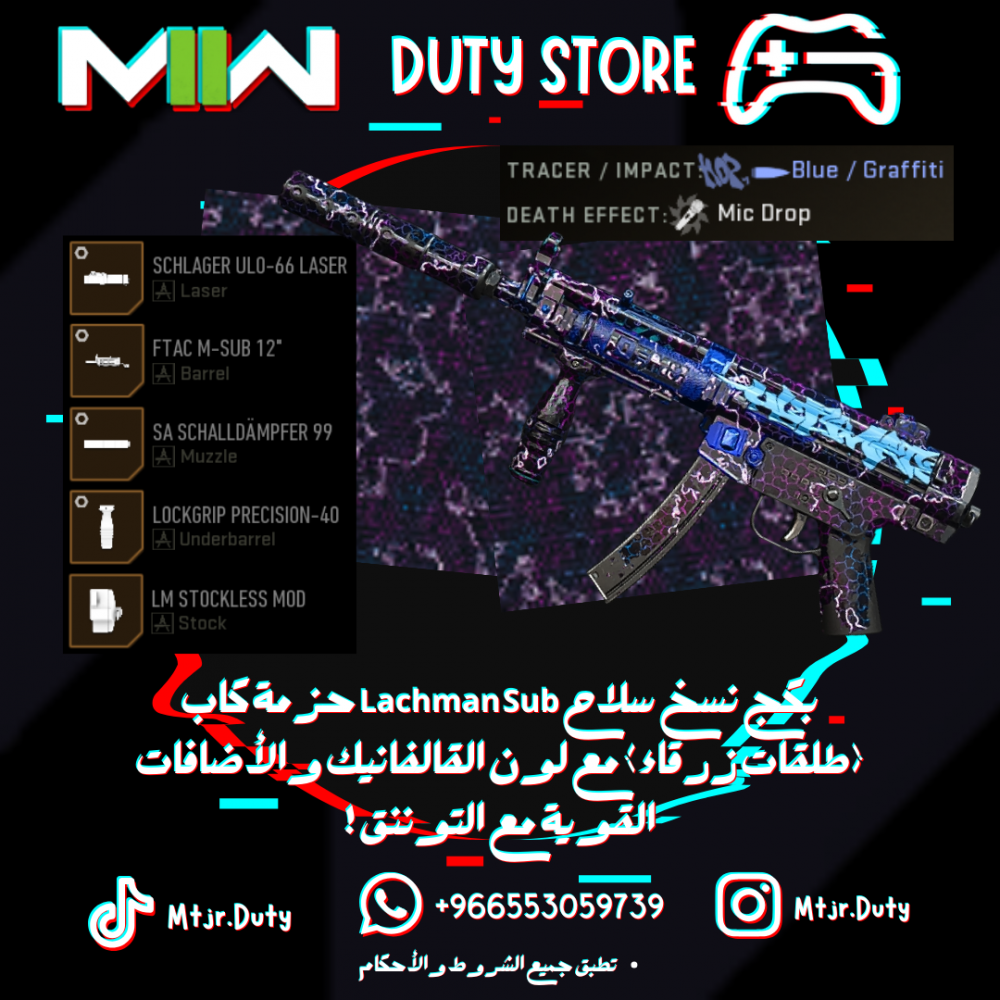 بكج نسخ سلاح Lachman Sub حزمة كاب (طلقات زرقاء) مع لون القالفانيك والأضافات القوية مع التوننق !