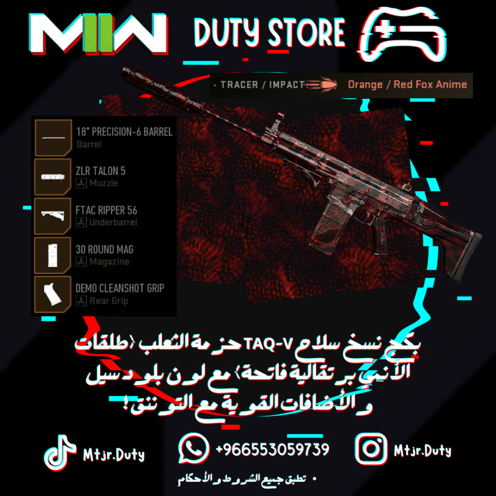 بكج نسخ سلاح TAQ-V حزمة الثعلب (طلقات الأنمي برتقالية فاتحة) مع لون بلود سيل والأضافات القوية مع التوننق !