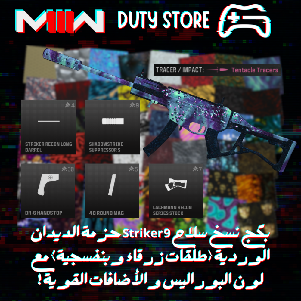 بكج نسخ سلاح Striker 9 حزمة الديدان الوردية (طلقات زرقاء وبنفسجية) مع لون البوراليس والأضافات القوية ! (جميع المنصات)