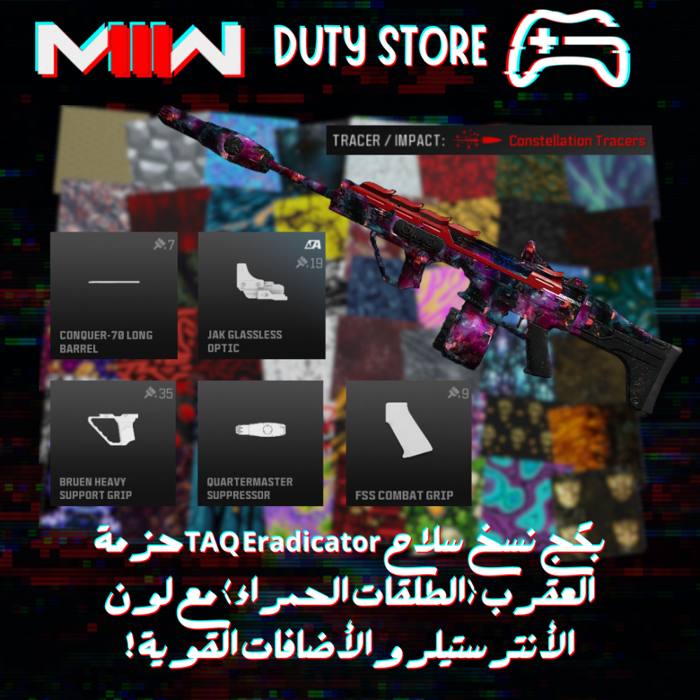 بكج نسخ سلاح TAQ Eradicator حزمة العقرب (الطلقات الحمراء) مع لون الأنترستيلر والأضافات القوية ! (جميع المنصات)