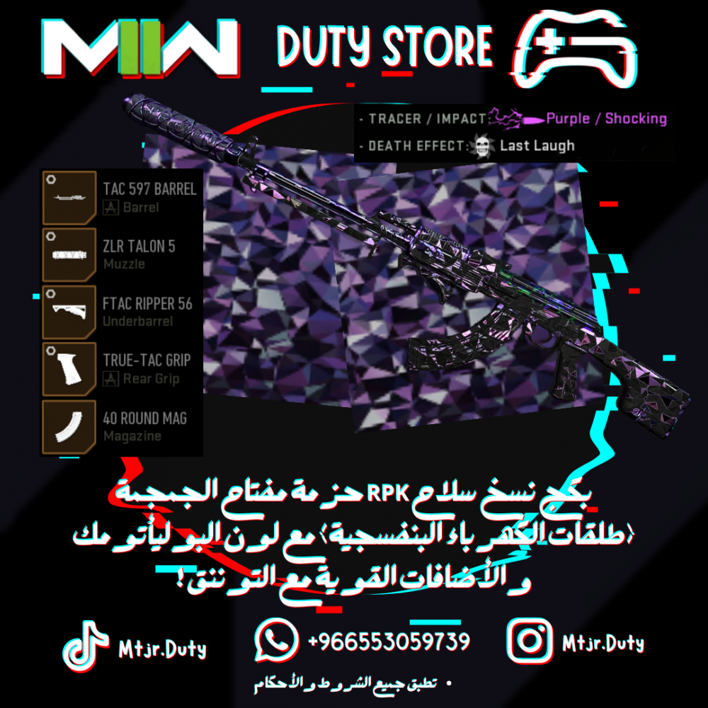 بكج نسخ سلاح RPK حزمة مفتاح الجمجمة (طلقات الكهرباء البنفسجية) مع لون البوليأتومك والأضافات القوية مع التوننق !