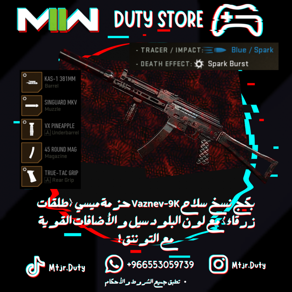 بكج نسخ سلاح Vaznev-9K حزمة ميسي (طلقات زرقاء) مع لون البلود سيل والأضافات القوية مع التوننق !