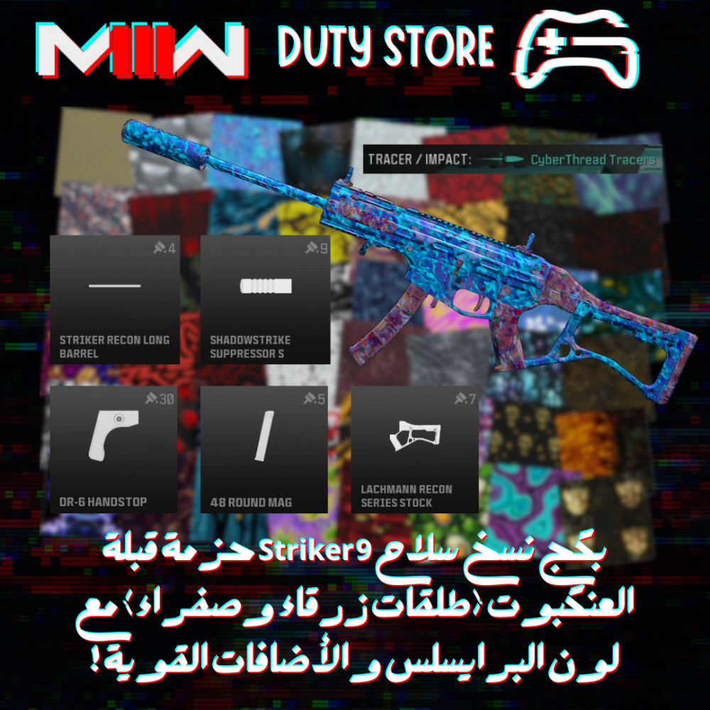 بكج نسخ سلاح Striker 9 حزمة قبلة العنكبوت (طلقات زرقاء وصفراء) مع لون البرايسلس والأضافات القوية ! (جميع المنصات)