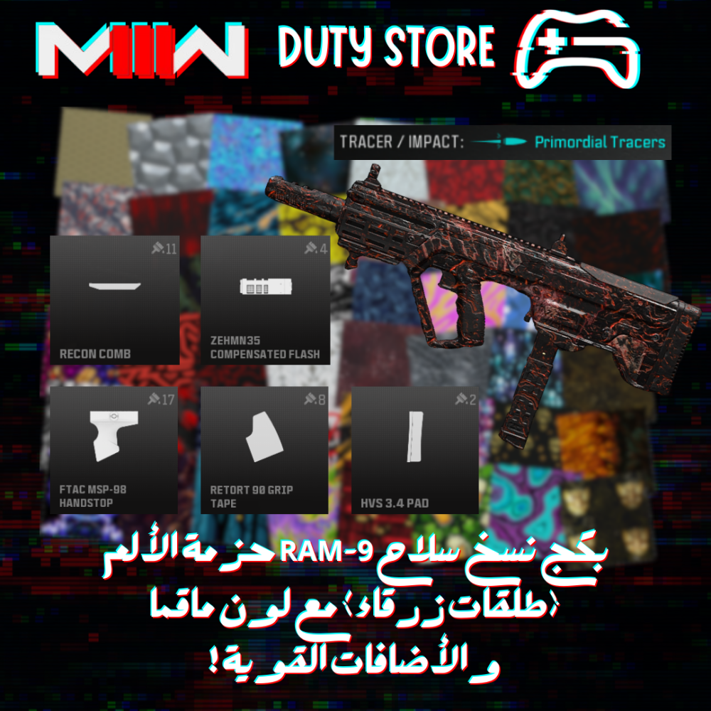 بكج نسخ سلاح RAM-9 حزمة الألم (طلقات زرقاء) مع لون ماقما والأضافات القوية ! (جميع المنصات)