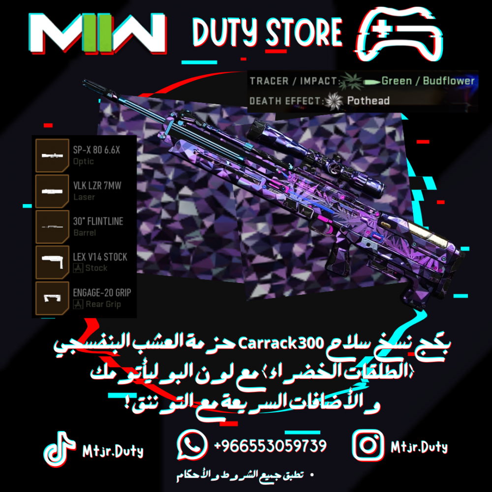 بكج نسخ سلاح Carrack 300 حزمة العشب البنفسجي (الطلقات الخضراء) مع لون البوليأتومك والأضافات السريعة مع التوننق !