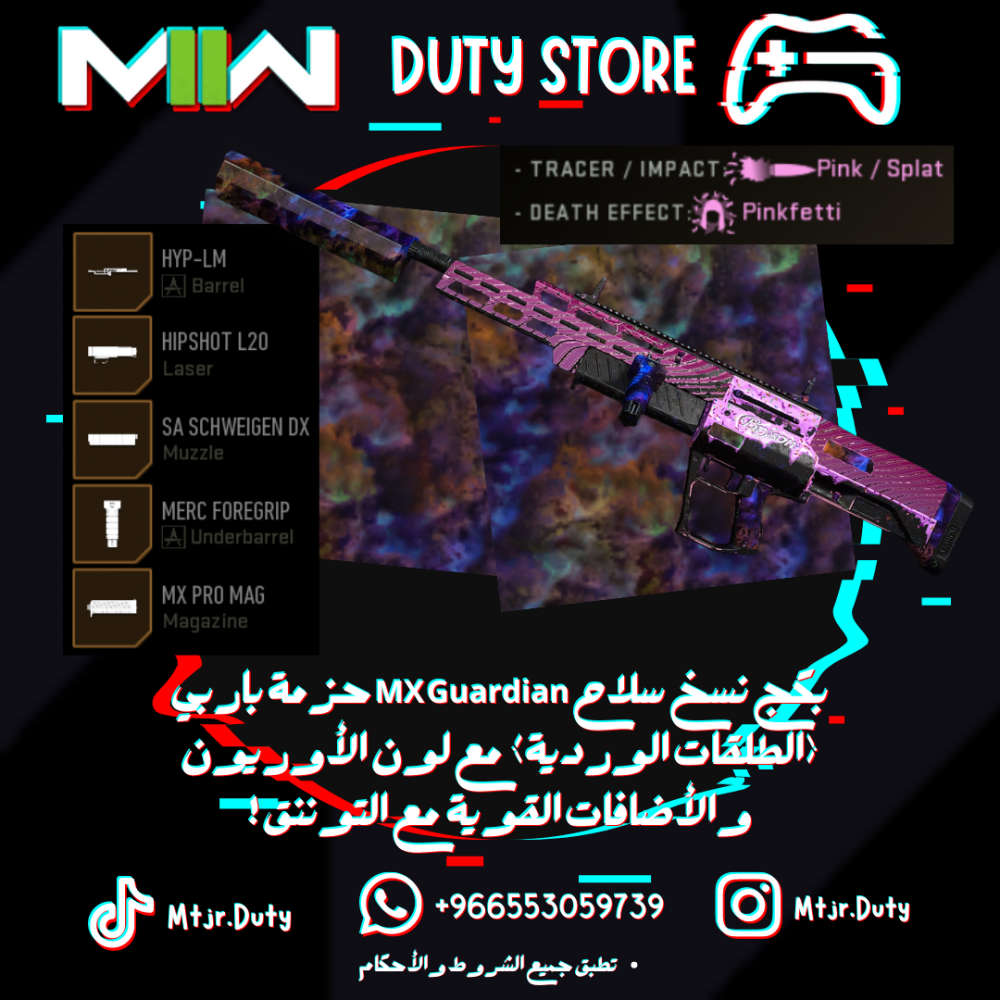 بكج نسخ سلاح MX Guardian حزمة باربي (الطلقات الوردية) مع لون الأوريون والأضافات القوية مع التوننق !