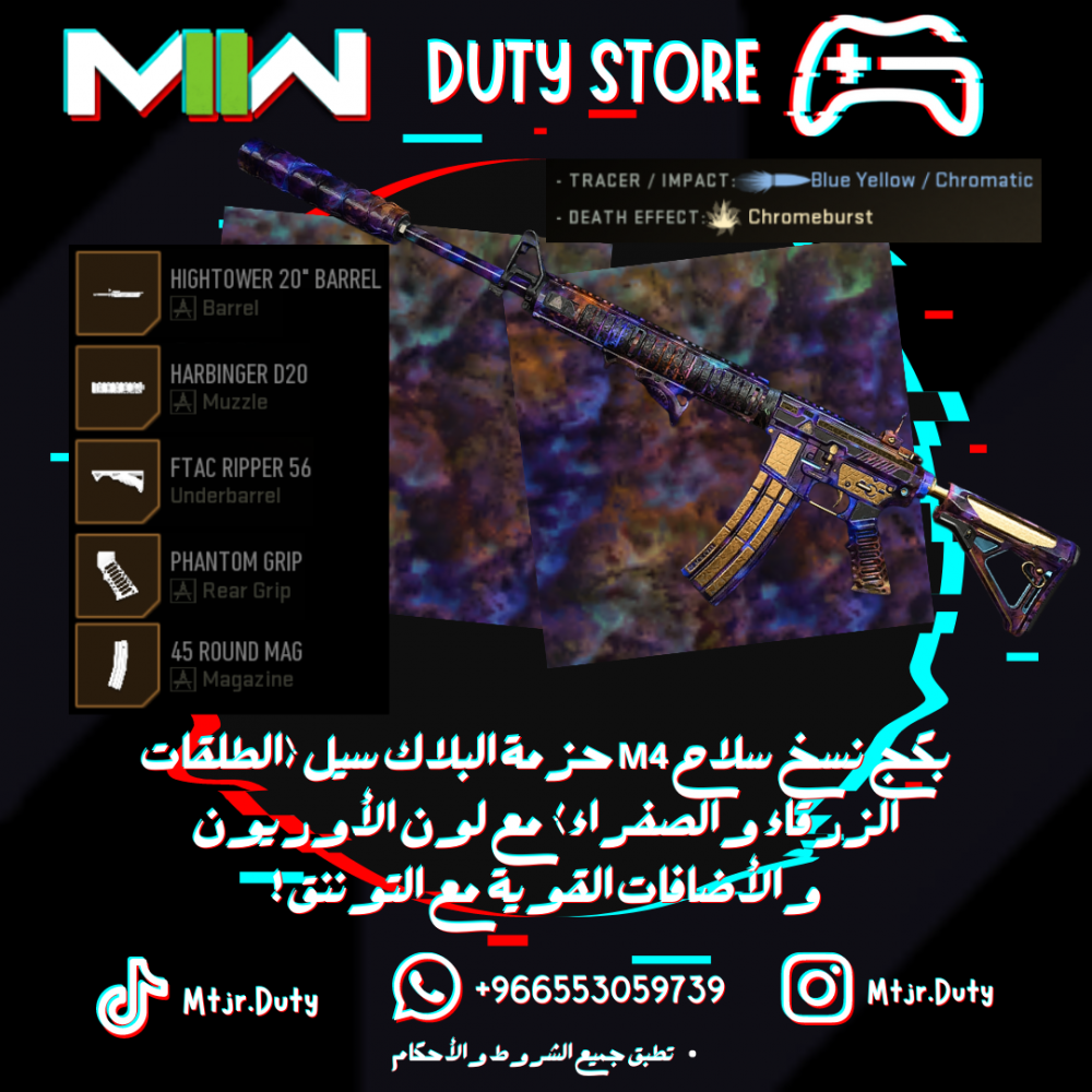 بكج نسخ سلاح M4 حزمة البلاك سيل (الطلقات الزرقاء والصفراء) مع لون الأوريون والأضافات القوية مع التوننق !