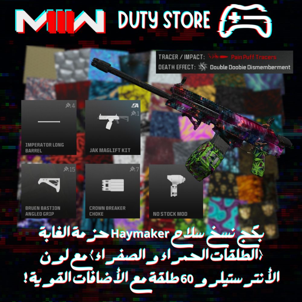 بكج نسخ سلاح Haymaker حزمة الغابة (الطلقات الحمراء والصفراء) مع لون الأنترستيلر و 60 طلقة مع الأضافات القوية ! (جميع المنصات)