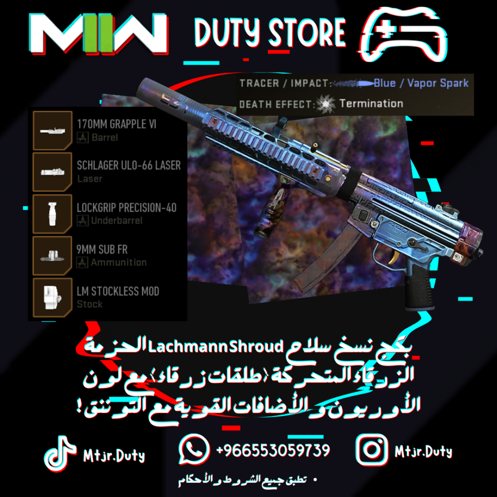 بكج نسخ سلاح Lachmann Shroud الحزمة الزرقاءالمتحركة (طلقات زرقاء) مع لون الأوريون والأضافات القوية مع التوننق !