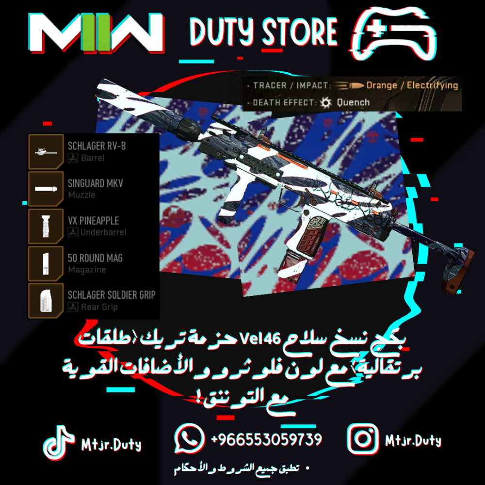 بكج نسخ سلاح Vel 46 حزمة تريك (طلقات برتقالية) مع لون فلو ثرو والأضافات القوية مع التوننق !