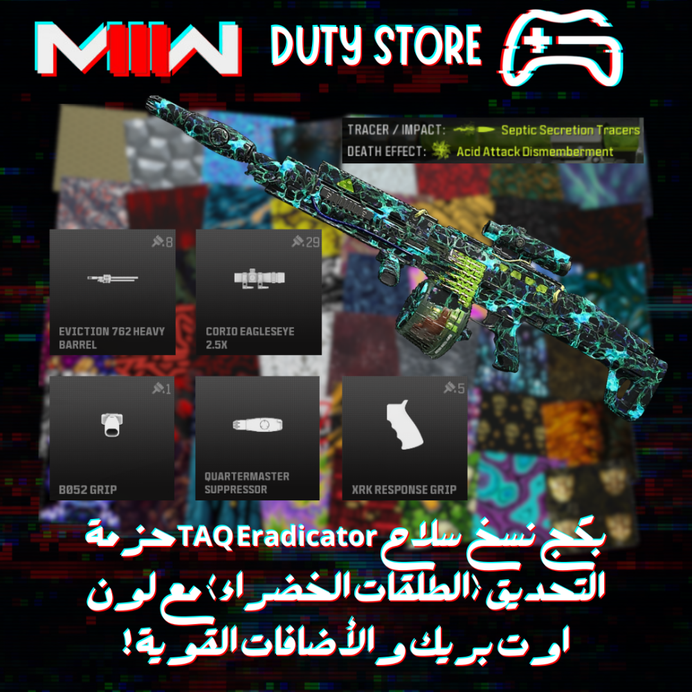 بكج نسخ سلاح TAQ Eradicator حزمة التحديق (الطلقات الخضراء) مع لون اوت بريك والأضافات القوية ! (جميع المنصات)